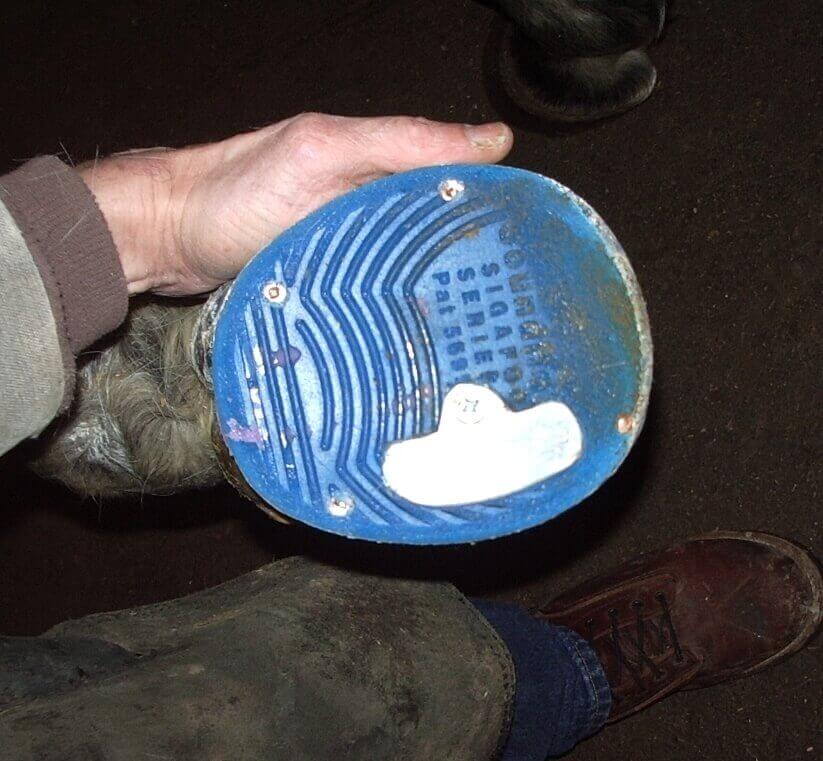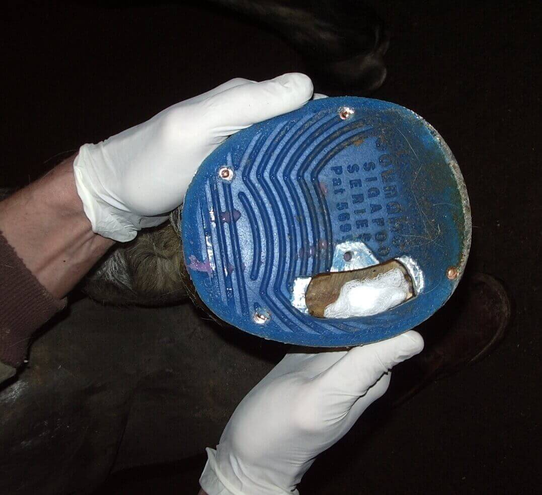 The maggots are not compressed or suffocated in the wound – Since we deal exclusively with hoof problems, we must ensure that if the maggots are placed in the bottom of the foot they are not compressed to tightly when the horse is weight bearing. Occasionally, the defect in the sole of the hoof is large enough that we can place the maggots, along with the dressing in the wound and apply a heavy foot wrap. Otherwise a shoe is applied that has a plate that offers wound protection and can be removed in order to change the gauze and monitor the progress of the maggots. We typically change the gauze and check the wound every other day. For us, the maggots mature in anywhere from 2 days to 8 days, depending on the severity of the infection.